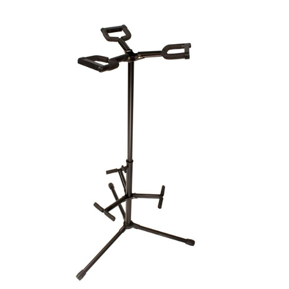 Keep three of your favorite acoustic, electric, or bass guitars safe on stage or in the studio with this triple-guitar hanging guitar stand! The JS-HG103 Triple Hanging-style Guitar Stand features heavy duty tubing with a powder-coated black finish and it covered in protective rubber at contact points. The easy-to-use safety gates secure your instruments ensuring they don’t accidentally fall.